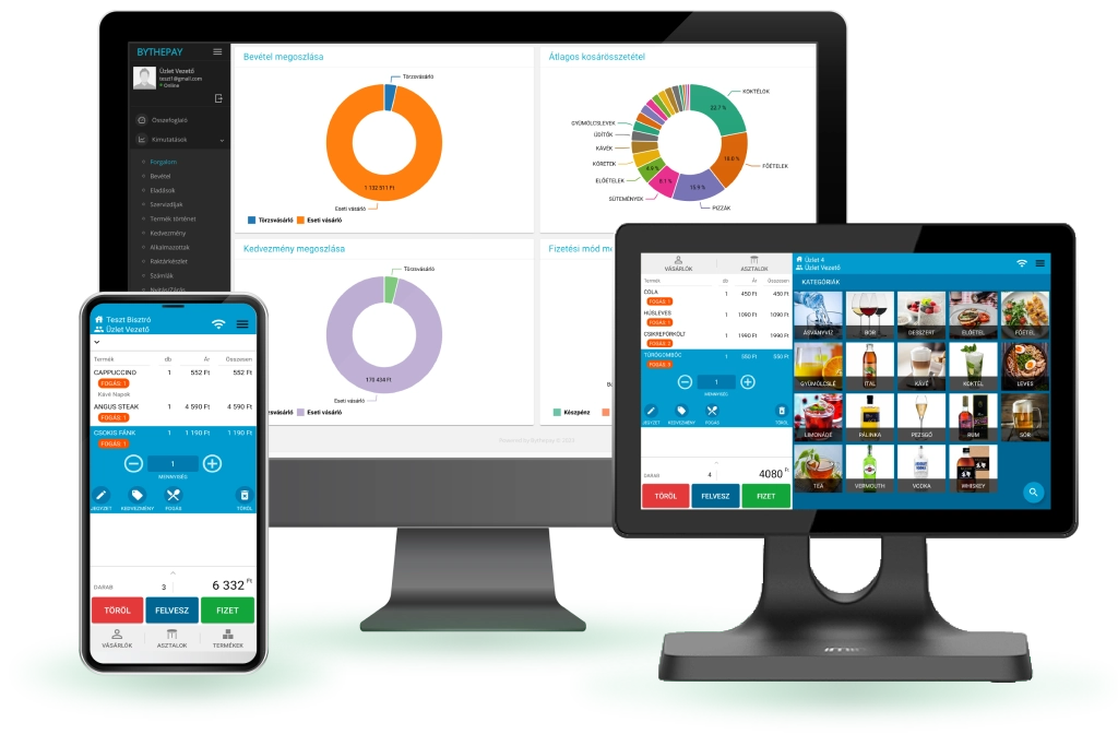 Az NTAK kompatibilis ByThePay vendéglátó szoftver egy teljeskörű vendéglátóhely üzemeltető rendszer, mely pillanatra pontosan mutatja az üzlet éppen aktuális bevételét készletét és még sok más elengedhetetlen döntéshozatali tényezőt. Szoftverünket úgy terveztük, hogy a bárki otthonában megtalálható Android alapú telefonon vagy tableten elfusson, így ne rójon nagy indulási költséget az üzlettulajdonosokra.